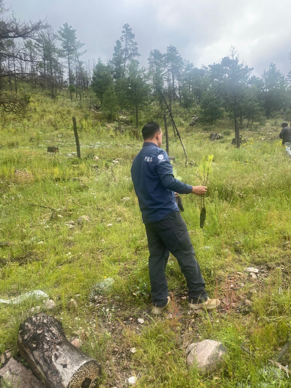 La plantación de los árboles se llevó a cabo en la comunidad de Noritare, municipio de Bocoyna, actividad en la que participaron elementos de la Agencia Estatal de Investigación y agentes del Ministerio Público.