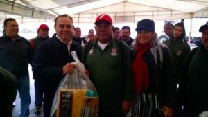 Antes de dejar la Alcaldía, el presidente municipal, Javier Garfio Pacheco, durante la mañana se reunió con sindicalizados del Municipio a quienes de manera protocolaria, entregó uniformes. Y es que los presentes beneficiados trabajan en la recolección de basura. En total fueron 600 uniformes los que se les entregaron, de