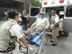 Un señor de aproximadamente 60 años fue arrollado por un conductor de un Nissan Quest y quedó tendido en la cinta asfáltica con la pierna fracturada. Lo anterior sucedió en el estacionamiento de Smart Saucito, hasta donde arribaron paramédicos de la Unidad de Rescate de Gobierno del Estado (URGE). La