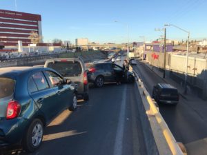 Una mujer que conducía su vehículo sobre el periférico De la Juventud provocó un triple choque, luego de que intentara cambiar de carril. La conductora viajaba a bordo de un Nissan Tiida de sur a norte sobre la arterial vial, sin embargo, al intentar cambiar de carril le cortó la