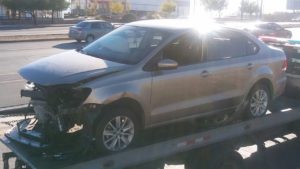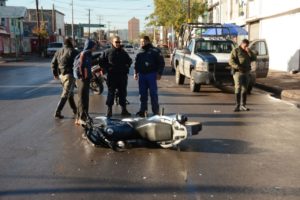 Conductor cae del distribuidor vial de la salida a Delicias