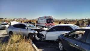 Un choque carambola en el que estuvieron involucrados cinco vehículos desató un intenso caos vial en el periférico De la Juventud, además de que tres personas resultaron lesionadas, entre ellas un menor. Fue entre las avenidas Cantera y Francisco Villa en donde sobrevino el accidente vial, hasta donde se trasladaron
