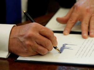 El presidente Donald Trump firmó las órdenes ejecutivas que den inicio a la construcción de un muro en la frontera con México y aumenten el número de agentes que controlan la inmigración ilegal. Trump realizó la ceremonia de rúbrica en el Departamento de Seguridad Nacional, cuyas responsabilidades incluyen el control