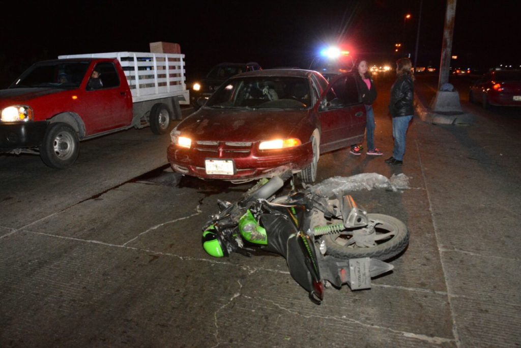 El conductor de un vehículo Nissan Tsuru se incorporó a la vialidad Sacramento e impactó a un motociclista, dejándolo con heridas de gravedad. El motociclista salió proyectado contra un vehículo Dodge Stratus que circulaba en sentido contrario, dándose a la fuga el responsable del accidente. Paramédicos de la Cruz Roja trasladaron al lesionado a un […]