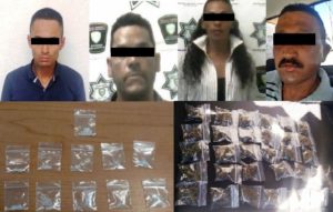 Agentes de los grupos especiales de la Policía Estatal Única, detuvieron a tres presuntos responsables de delitos contra la salud, dos de ellos, esposos a los que les decomisaron cuatro kilos de un enervante con las características de la marihuana. Derivado de las investigaciones y trabajo de campo que realizan