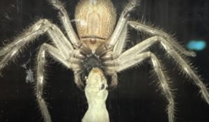 – Una pareja de australianos captaron el momento exacto en que una araña cazadora de gran tamaño, que colgaba de la ventana de su casa, paralizó a una lagartija por la cabeza para poder devorarla. El arácnido fue descubierto en Beerwah, Queensland, Australia por Melanie Jade, mientras que ella y