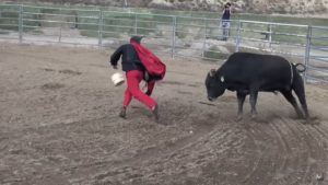 Planta cara a un toro de rodeo disfrazado de demonio y acaba con la mandíbula rota